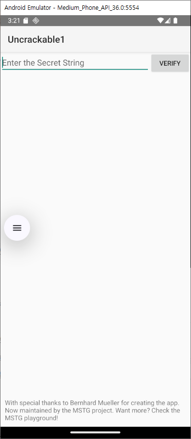 실습에 사용한 앱은 OWASP Mobile Security Testing Guide(UnCrackable Level 1) APK이다.