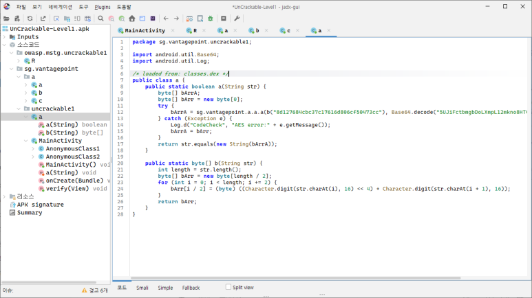 내부 AES 처리: sg.vantagepoint.a.a.a(byte[], byte[])
