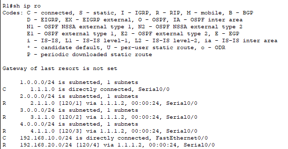 RIP - 1.0.0.0 / 4.0.0.0 / 192.168.10.0 / 192.168.20.0