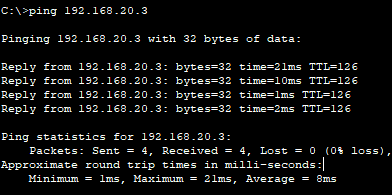 192.168.10.1/24 ㅡ> 192.168.20.3 통신 확인