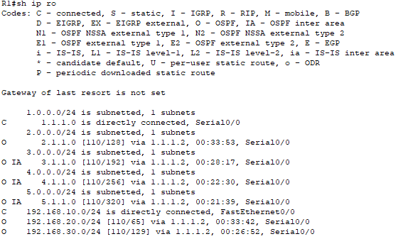 OSPF - 1.0.0.0 / 2.0.0.0 / 5.0.0.0 / 192.168.10.0 / 192.168.20.0 / 192.168.30.0
