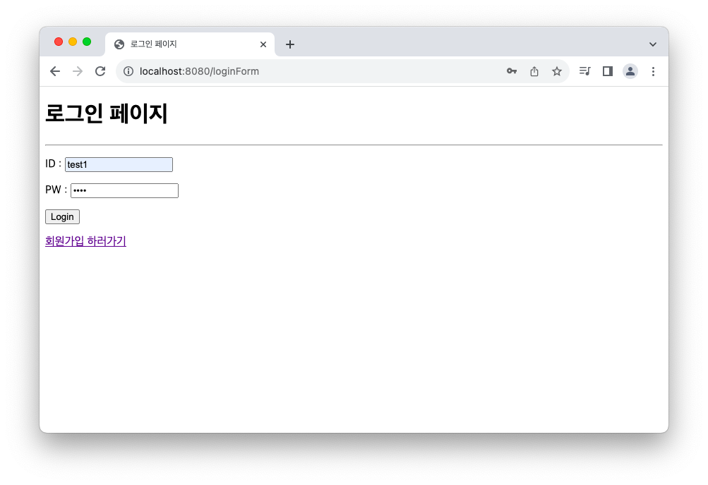 아이디가 test1인 계정으로 로그인을 시도하면,