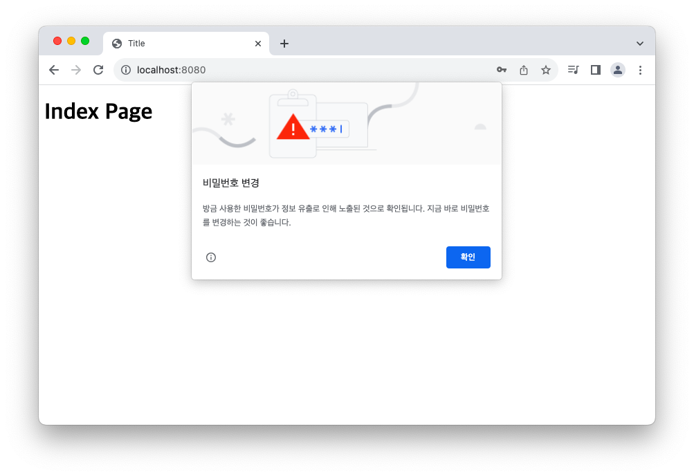 로그인과 동시에 인덱스 페이지로 이동하는 것을 확인할 수 있습니다..